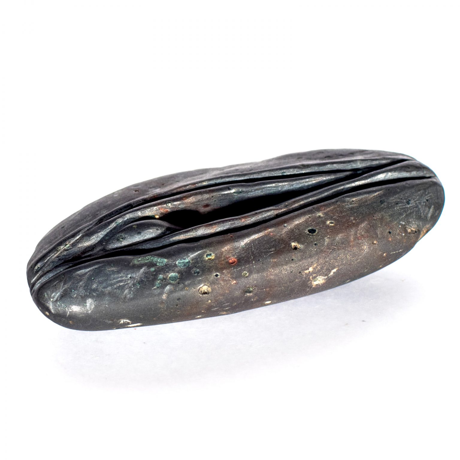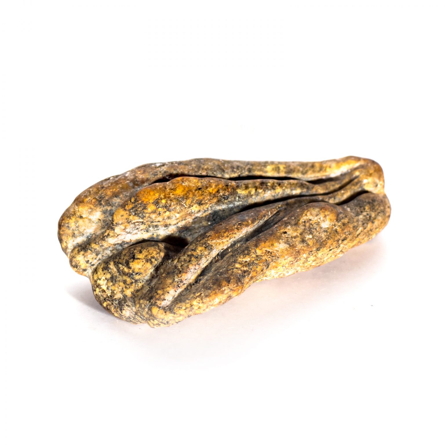The frontal part of the sculptures is based on symbolic representation of the series’ subject appearance and by almost scientific precision of its tactile feel. The feel becomes especially apparent when the sculpture is warmed in the hand to the body temperature. The back of the sculpture is rough stone touched just enough to be pleasant on touch, which allows the object to be stored anywhere. This design is also a reason for the series name.